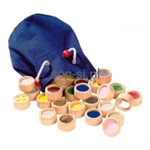 Można wrzucić wszystkie krążki do woreczka bawełnianego, dzięki czemu dziecko będzie mogło nie zamykając oczu szukać właściwej pary.