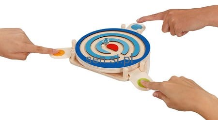 Ćwiczenia równoważne i motoryczne to bardzo ważne aspekty rozwoju dzieci. Labirynt dla kulek w formie gry wieloosobowej (max 3 osoby).