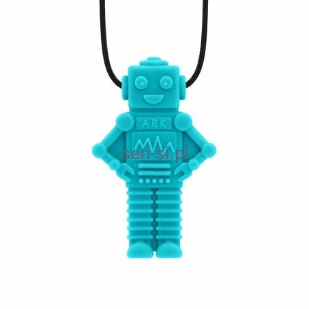 Gryzak w kształcie robota w formie naszyjnika. Bardzo wygodna i bezpieczna alternatywa w stosunku do gryzienia kredek, pisaków czy własnych palców. Szczególnie polecane dla dzieci tzw "przeżuwaczy", którym pozwala odreagować różnego rodzaju stresy dając możliwość skupienia np na pracy domowej lub innych zajęciach wymagających zwiększonej uwagi.