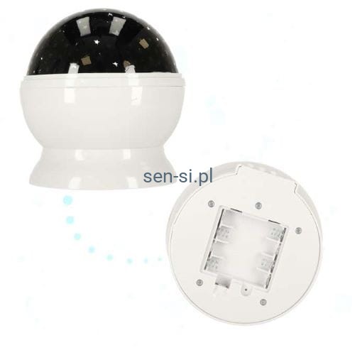 · Wbudowane diody LED RGB - pozwalają dostosować ilość kolorów. Dodatkowo różne tryby np. płynne przechodzenie kolorów, lub tryb do spania - projekcja wyświetlana jedną diodę LED o barwie białej ciepłej