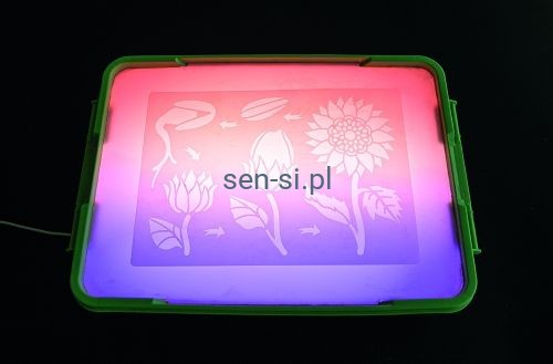 Odkryj nasz innowacyjny kaseton świetlny z akcesoriami do wykonywania rysunków na piasku.