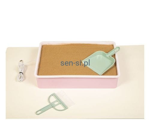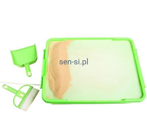 Zestaw zawiera: worek z piaskiem, szufelkę, szczotkę i miarkę.