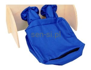 Na ściance ze stabilnej sklejki znajduje się woreczek, do którego wkładane są różne przedmioty.